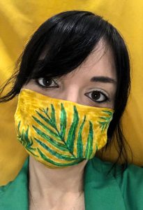 According to zero waste idea, I am going to use reusable masks. I stocked up on special fabric markers, fabric liners and pastel dye sticks. By ironing the fabric the colour is set. Seller send me white masks that were supposed to be from the microfiber. However, they remind me more of the material for diaper (tetra). They are white, so it is possible to color them anyway. Nothing will be wasted. The mask is double, which means that you can put in the middle for example filter. The advantage of this mask is that it is light and delicate. Ha! I have even the impression that it passes the air. Great for warm upcoming days! I have used the pattern from the leaves of a palm tree, on another mask I have drawn a paragraph.