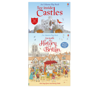📚 W skład zestawu wchodzą „See Inside Castles” oraz „See Inside the History of Britain” – pełne ciekawostek książki z klapkami do odkrywania historii!
