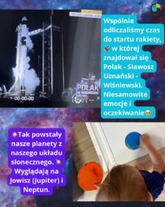 Naszą inspiracją do stworzenia pracy plastycznej był start rakiety z Polakiem na pokładzie – Sławoszem Uznańskim! 🚀 Emocje sięgały kosmosu, więc postanowiliśmy ruszyć w kreatywną podróż po planetach.