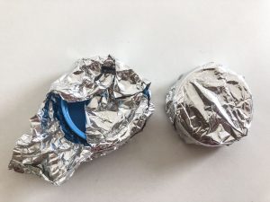 Na koniec owijamy w folię aluminiową, żeby dzieci miały jeszcze więcej zabawy i niespodziankę. W tej formie nakrętki przypominają też cukierki.